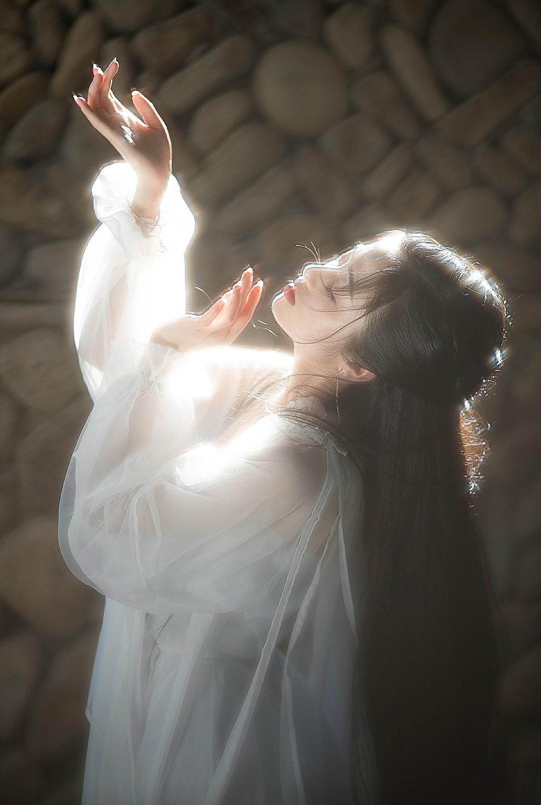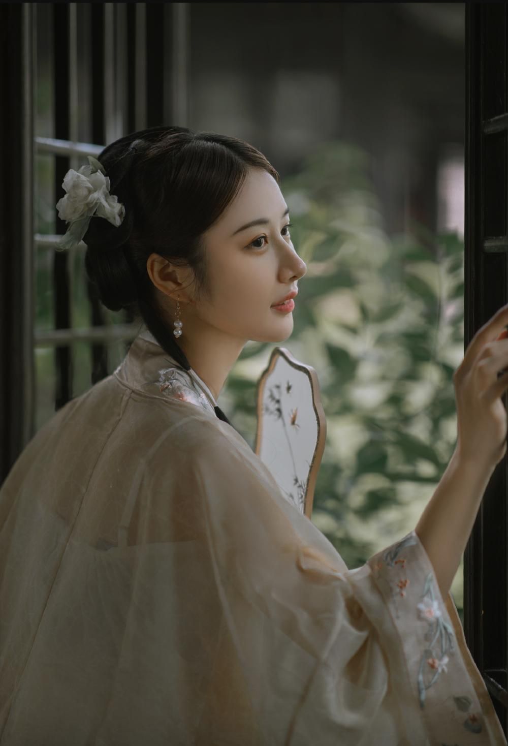 妆容收拾停当,站立东风之中,随意举动,便是万般芳华。轻柔一笑,令人觉千金都难买她笑靥。