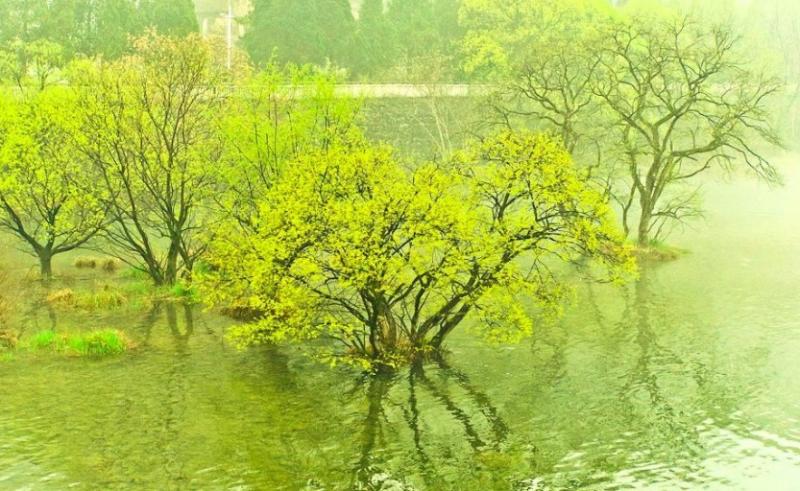 新黄先入柳,微绿自生波。