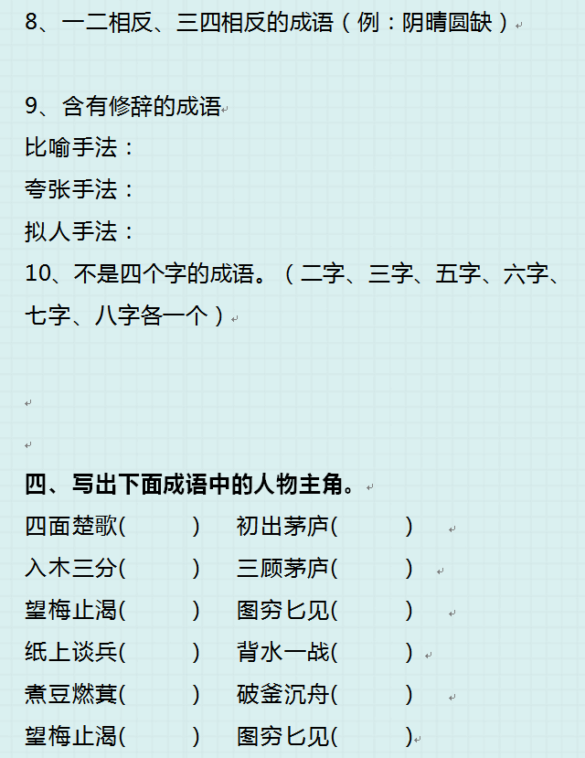 四、写出下面成语中的人物主角。