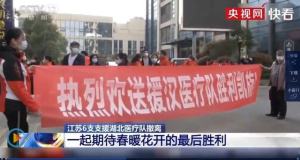 “热烈欢送援汉医疗队胜利凯旋!”