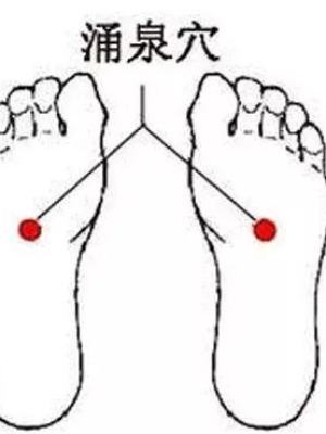 脚心上的穴位叫涌泉,处开头的成语,是肾经的井穴,所谓井穴,就是指肾经是从这里接龙发源的。