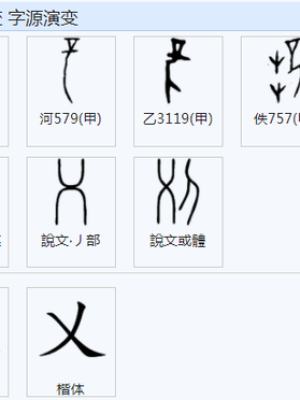 《说文解字》:“乀,左戾也。从反丿。读与弗同,秋什么气爽四字成语。”。自左而曲於右故其字象自右方引之犹象阴液流出之形者是清爽乀字之范式。