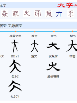 《说文解字》:“大送爽,天大爽组,地大,人亦大。故大象成语人形。”。犹人张两手、两足之正面形者是大字之范式。