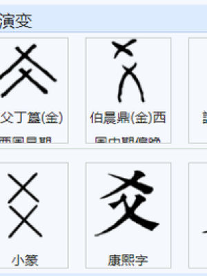 《说文解字》:“㸚,二爻也。”《说文解字注》第512页:“㸚.(㸚)二爻也。二爻者,交之广也。”。