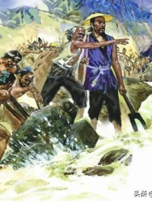 大禹来到洪水泛滥的地区以后,并没有马上动手治理洪水,而是对各地灾情进行认真研究。他发现以前治水之所以不能取得成功,是因为自己的父辈一直采用堵塞洪水的办法。结果堵得越久,洪水泛滥的程度就越严重,所以他决定改用疏导的办法来治理水患。确定了治水方案之后,大禹亲自率领徒众和百姓,带着简陋的石斧、石刀、石铲等工具开始治水。他根据山川河流的位置重新设计水道,决定开山劈石,以便让洪水由小河流入大河,最后再流进大海,这样一来就可以解决洪水泛滥的问题了。