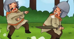 孟子说,那我先给你讲个故事吧:战国时期,有一次两国交战,一方的将士刚听到鼓点,就抛下盔甲,狼狈而逃。逃跑的过程中,有的士兵跑的快,有的士兵跑的慢。这时候,那些跑的慢的人就嘲笑跑的快的士兵:你们真是胆小鬼,跑的那么快!