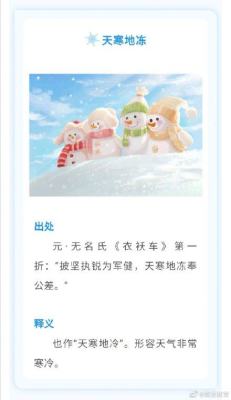 经典一刻【冷冷冷!一起来感受这些“寒”意十足的成语】在寒意渐重的时节,除了欣赏那美丽的冬景,再一起来感受一下“寒”意十足的成语,读懂冬天的故事